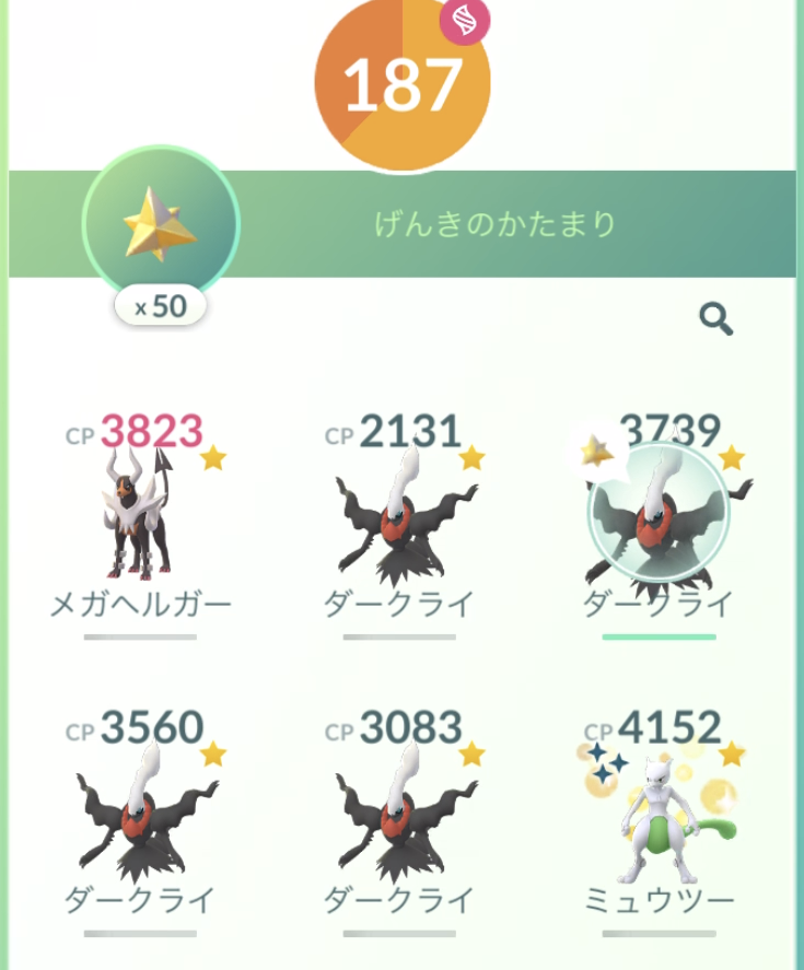 参考までに技は「メガヘルガー」パークアウト・イカサマ。「ダークライ」パークアウト・シャドーボールです。